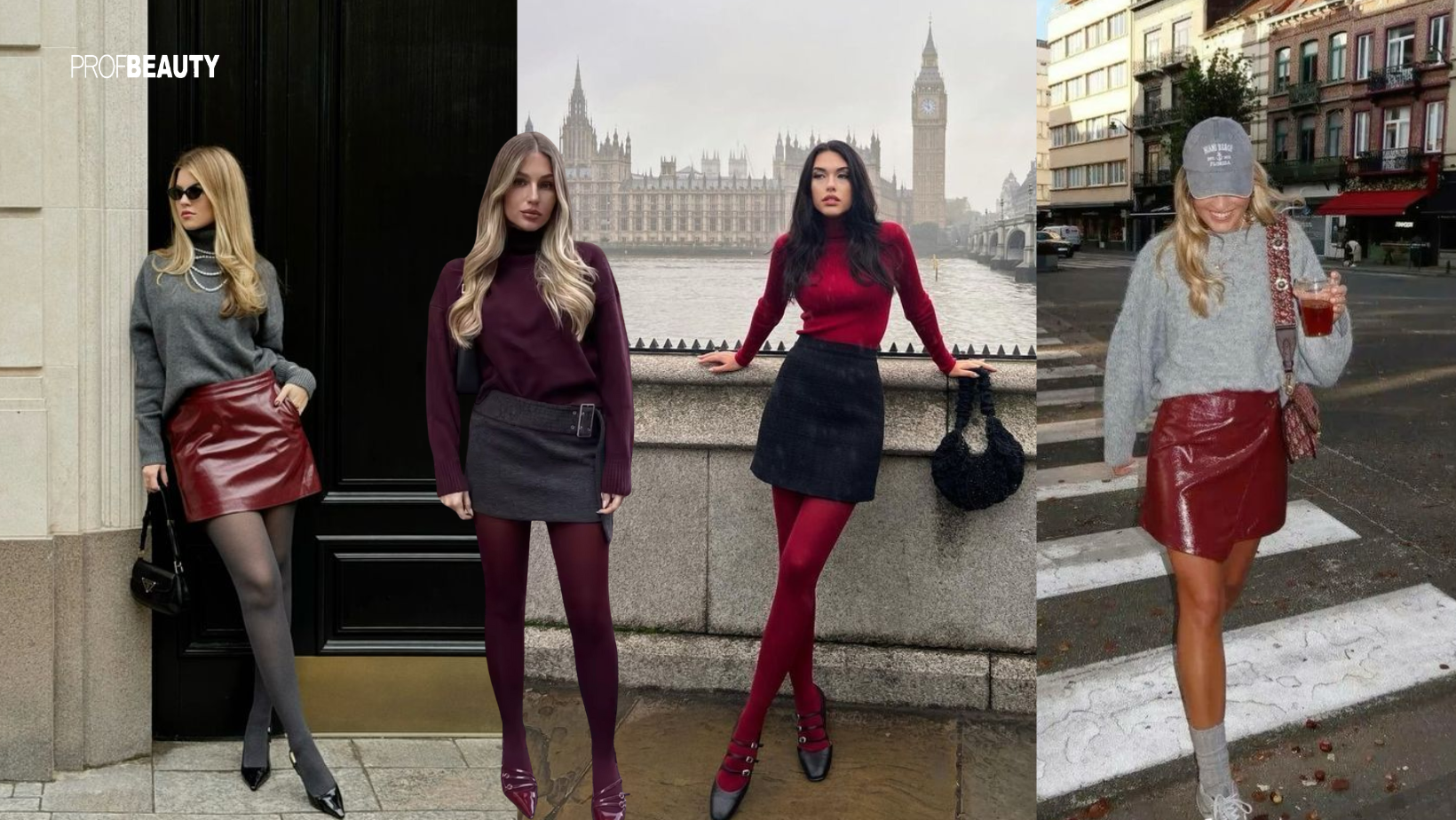 Chân váy ngắn chất liệu da hoặc dạ luôn sở hữu sức hút rất riêng. Bề mặt da bóng nhẹ mang lại cảm giác cá tính và đầy hiện đại, trong khi chất dạ lại gợi sự ấm áp rất hòa hợp với không khí se lạnh của Giáng sinh. Khi kết hợp cùng áo len dáng rộng, áo cổ lọ ôm sát hay áo giữ nhiệt tối giản tổng thể tạo nên một sự cân bằng tinh tế: phần trên ấm áp mềm rũ, phần dưới gọn gàng sắc nét. Sự tương phản này khiến outfit trở nên cuốn hút hơn, giàu chiều sâu về chất liệu mà vẫn giữ được vẻ chỉn chu. Để làm nổi bật form dáng và tăng điểm nhấn thị giác, có thể thêm một chiếc thắt lưng bản nhỏ để định hình vòng eo. Kết hợp tất cao đến gối để kéo dài đôi chân hoặc chọn boots đế cao cho cảm giác mạnh mẽ và thời thượng hơn. Mỗi chi tiết đều góp phần hoàn thiện tổng thể tạo nên sự hòa quyện giữa tính ứng dụng ngày đông và tinh thần thời trang của mùa lễ hội.
